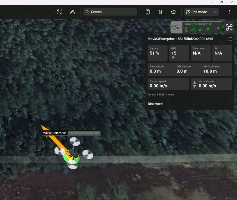 - Turn on the drone – the drone should now be visible in UgCS Desktop.